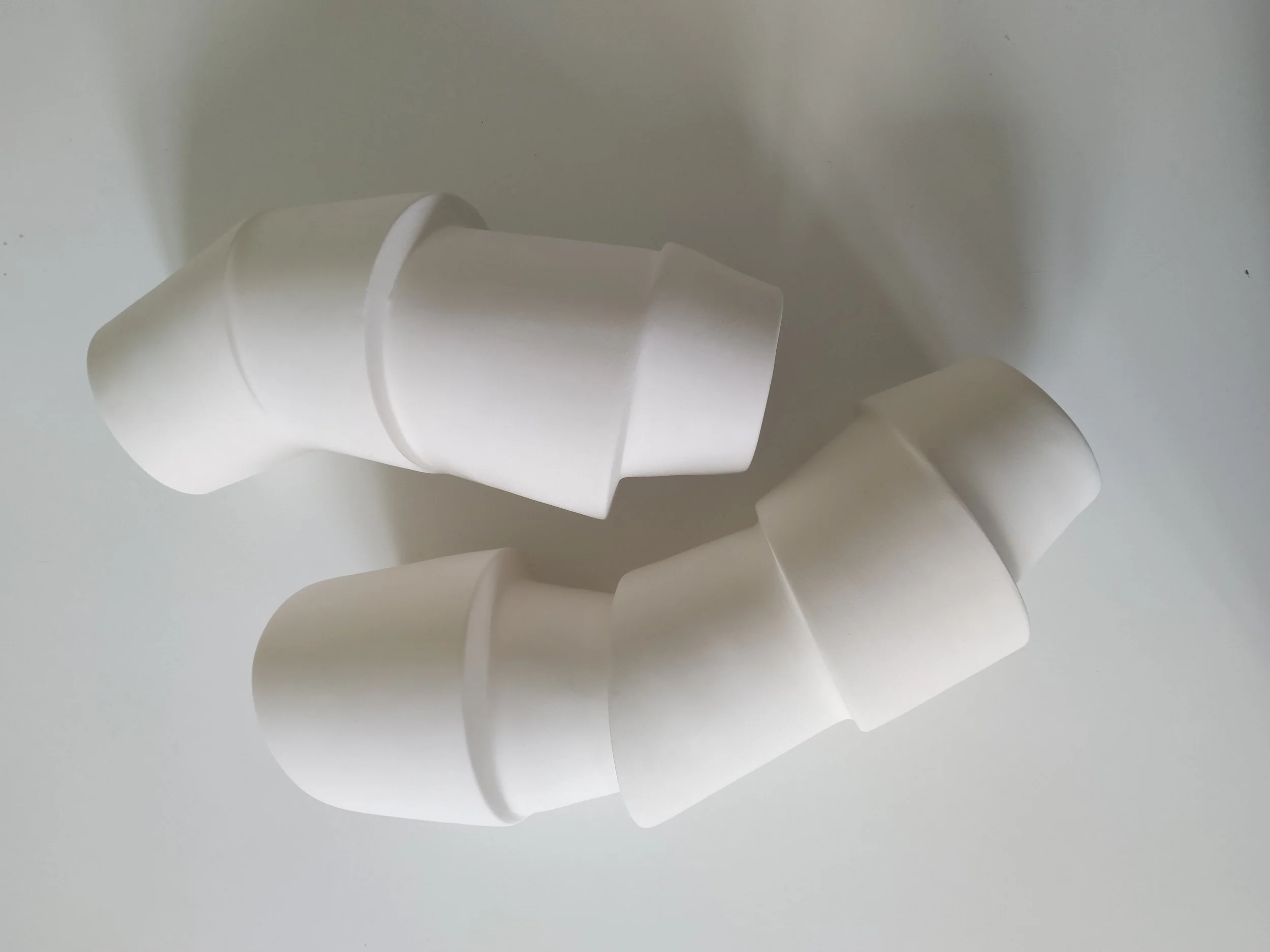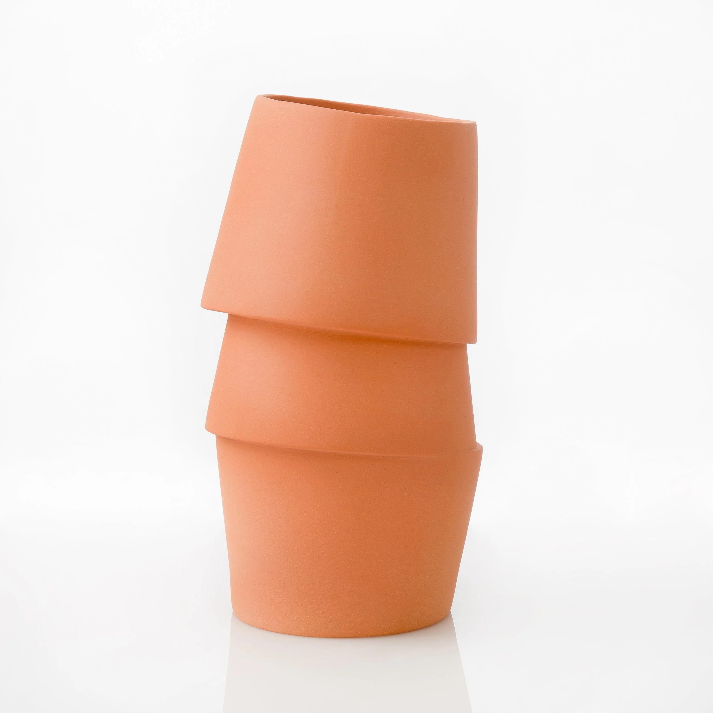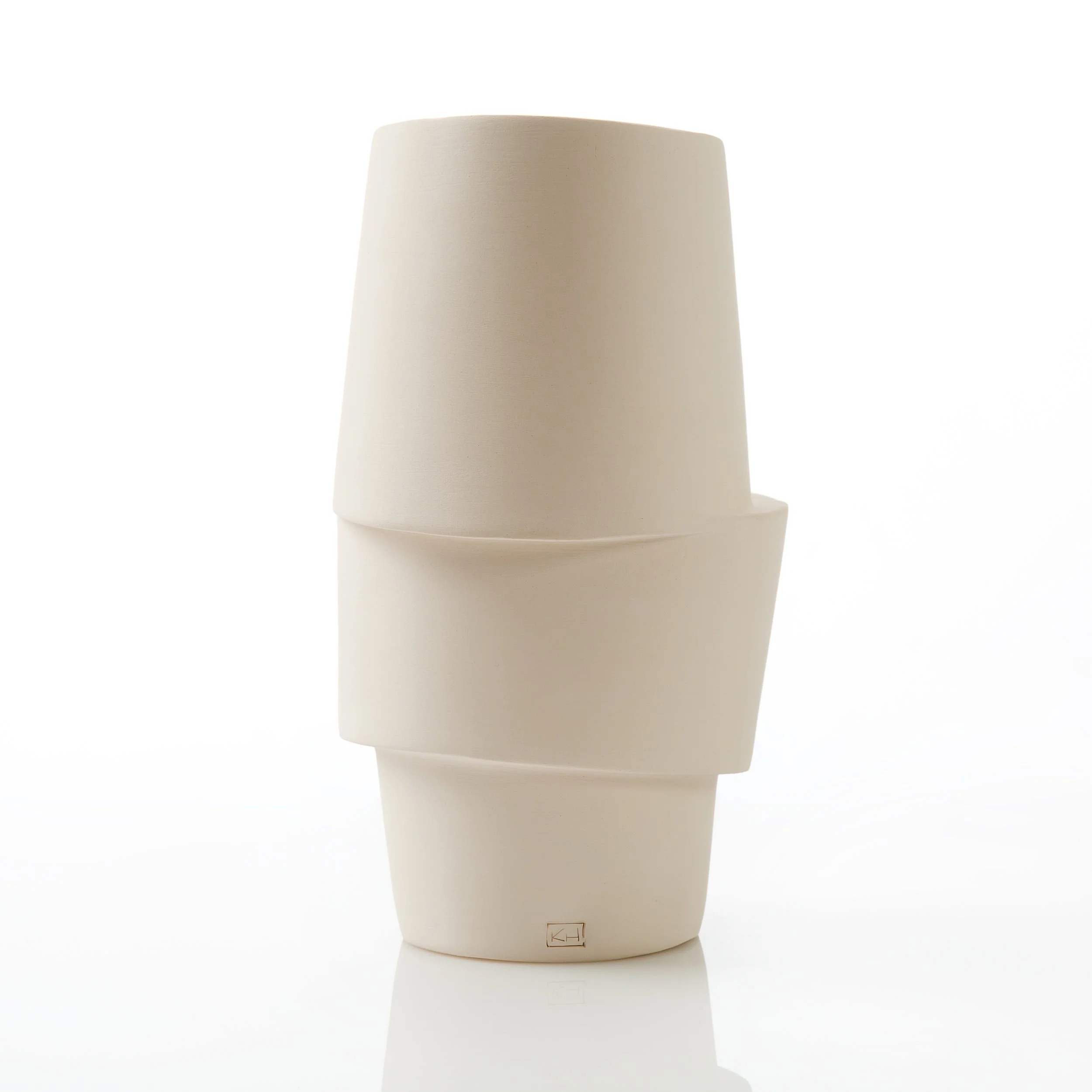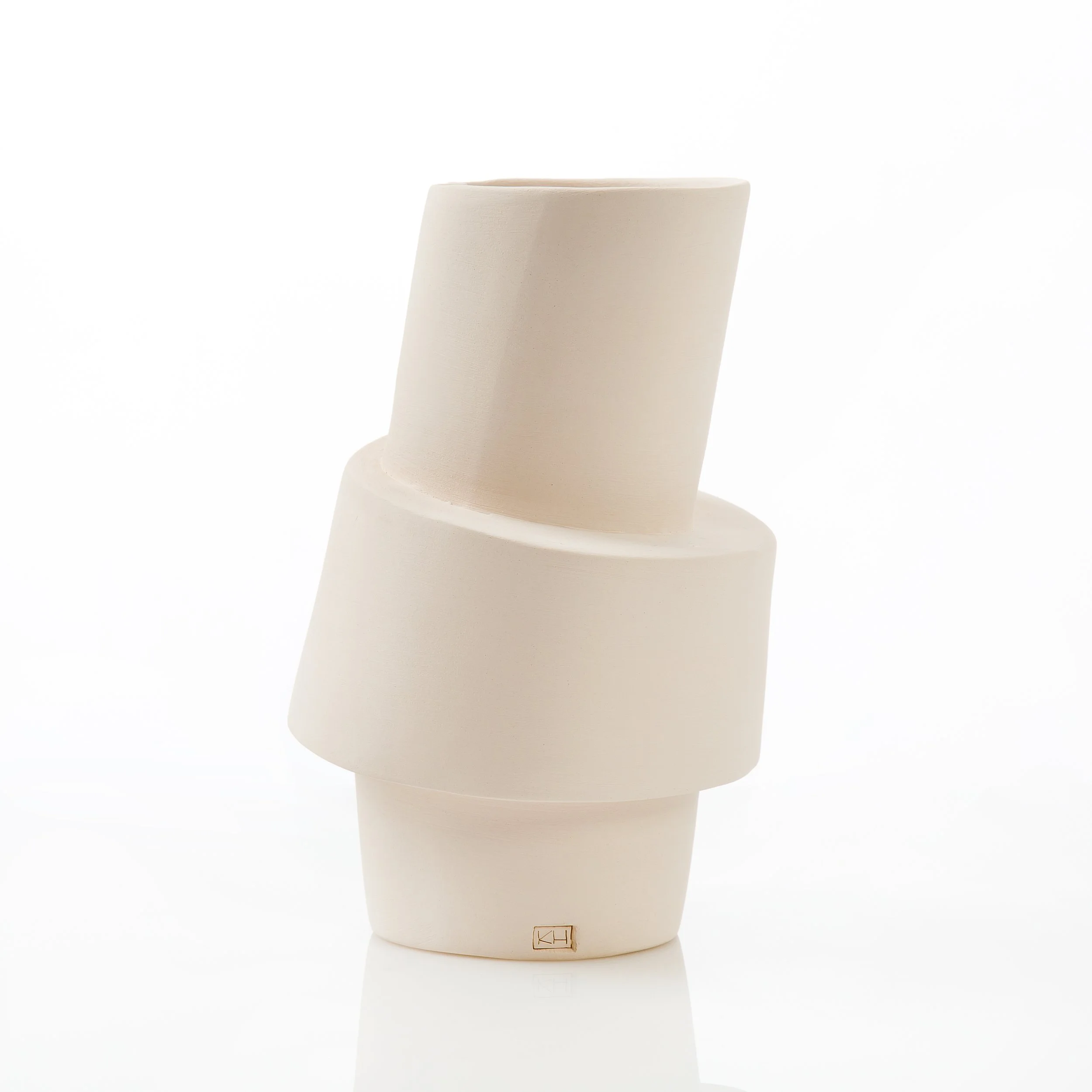 Al snel werd duidelijk dat mijn interesse ging naar het gebruik van gietklei en dat is voor mij een doordacht technisch proces. Het schetsen vooraf, het maken en stapelen van gipsmallen, het inkleuren en gieten van de klei, de droog- en bakprocessen. Het resultaat is telkens weer verrassend anders. Elk stuk in zijn unieke vorm, speels en eindeloos te combineren, abstract en puur.